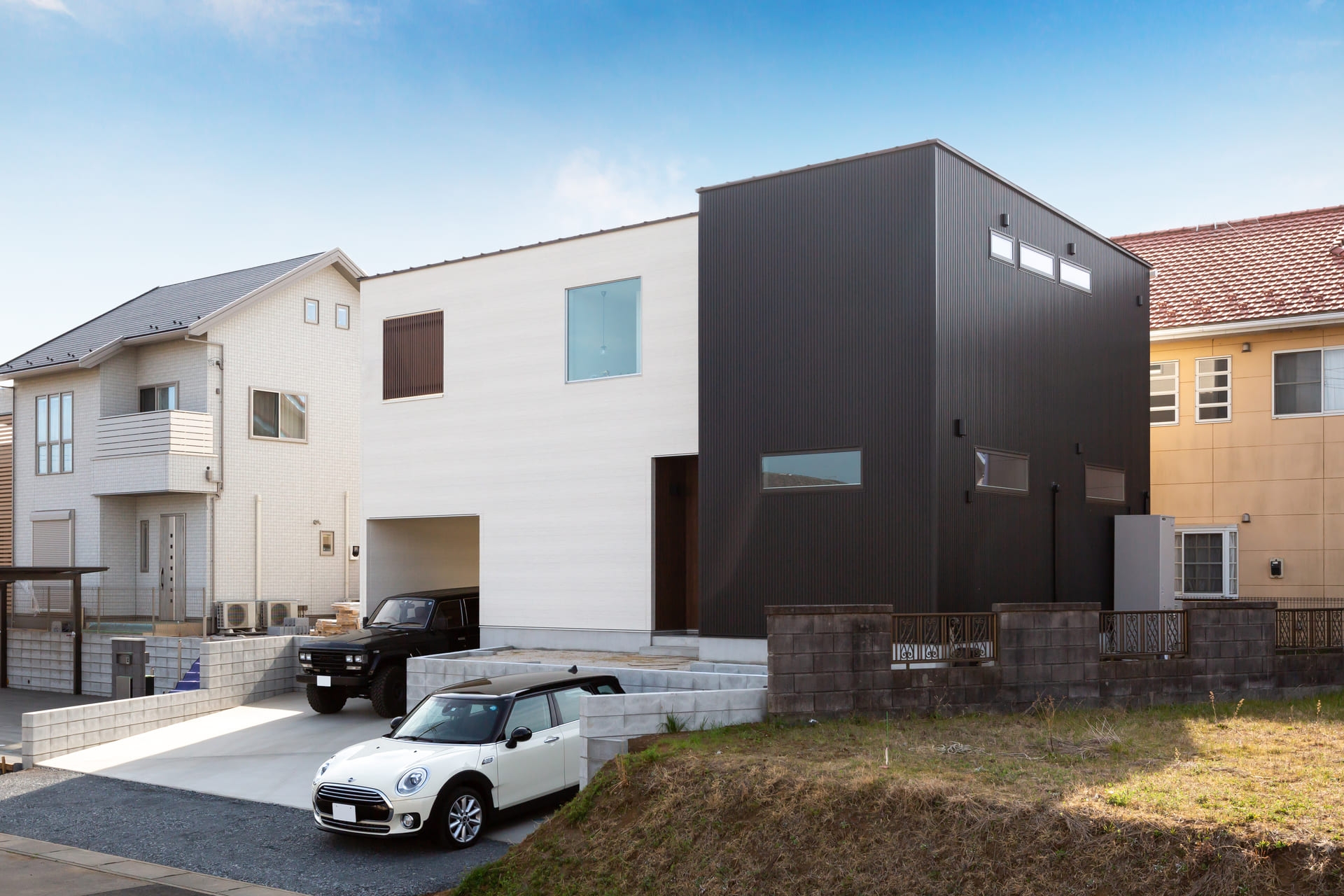 間取りの打合せの中でも、本音で話し合っていただけたことで、理想的な間取りになったかと思います。ガレージのある家をご検討だったK様は、キャンプが趣味で、沢山のキャンプ道具を収納できるガレージもつくることができました。ガレージに停める愛車がとても良く似合う家です。また、グレーを基調とした内装とひと際存在感のある素敵なキッチンも印象的で、12帖の広々としたバルコニーから暖かい日の光が差し込みます。